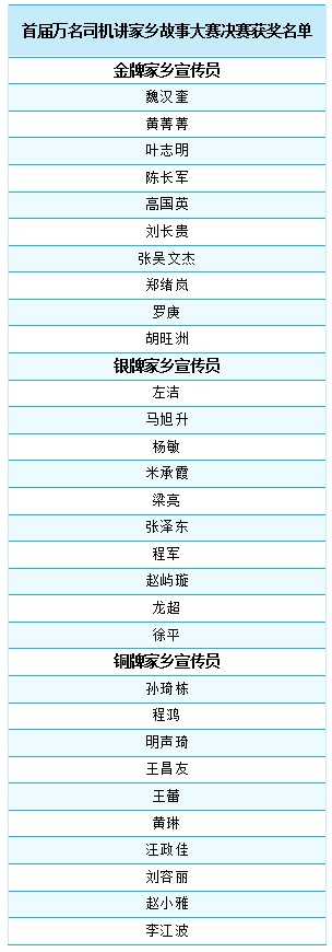 評委對決賽選手給予高度評價,“荊楚大地文化璀璨,人杰地靈,司機是連接荊楚大地所有物理空間和精神空間的重要的載體。30位司機,30張名片給我們講了30個故事。有講述百年黨史的紅色故事,有展現(xiàn)家鄉(xiāng)人文景觀的綠色故事,有歌唱家鄉(xiāng)發(fā)展的金色故事。他們是家鄉(xiāng)故事最好講述者,是地方文化最佳的傳播人。他們用司機的方式講述湖北故事、中國故事。”