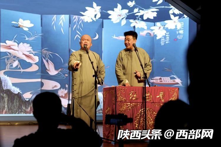 “我們長(zhǎng)安的口音,四個(gè)字——生冷蹭倔?!薄罢O,你說(shuō)得沒(méi)錯(cuò)?!币粡堊雷?,兩架話筒,在西安青曲社的相聲舞臺(tái)上,兩個(gè)穿著長(zhǎng)袍馬褂的相聲演員把包袱甩得叮當(dāng)響。在兩人配合默契的捧逗之間,現(xiàn)場(chǎng)歡樂(lè)的氛圍被推向了最高潮。整場(chǎng)演出高潮迭起、精彩紛呈,博得了臺(tái)下媒體團(tuán)記者的陣陣掌聲與喝彩聲。