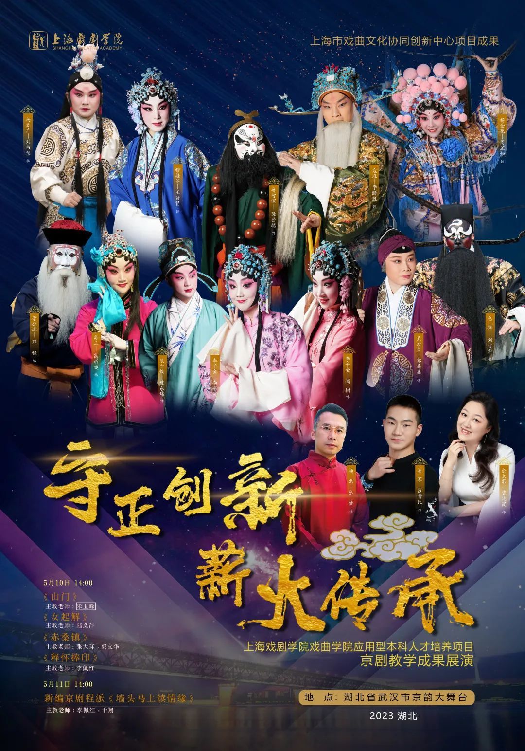 5月10日、11日,來自上海戲劇學(xué)院戲曲學(xué)院的同學(xué)們在湖北武漢京韻大舞臺為武漢的觀眾朋友們呈現(xiàn)了兩場精彩的京劇演出。5月10日上演了四出折子戲《山門》《女起解》《赤桑鎮(zhèn)》《釋懷捧印》,主演學(xué)生為阮登越、高昕奕、鄭晶晶、王致賢,主教老師為朱玉峰、陸義萍、張大環(huán)、郭文華和李佩紅。5月11日上演了新編京劇程派《墻頭馬上續(xù)情緣》,主演學(xué)生為李若溪、浦樹、李瞳勝,主教老師為李佩紅、于翔,同時邀請了學(xué)院校友陳東煒共同主演。此外,兩場演出還特別邀請到了湖北省京劇院的藝術(shù)家們共同出演。本次赴武漢京劇教學(xué)成果展演,既是應(yīng)用型本科人才培養(yǎng)項目成果,也是上海市戲曲文化協(xié)同創(chuàng)新中心項目成果。