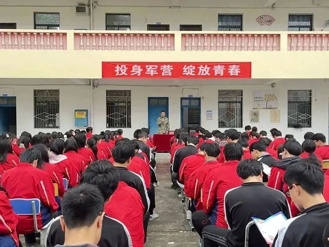 人武部何寶平政委結(jié)合自身從軍三十年的體會,暢談兵之初經(jīng)歷,鼓勵大家踴躍報名參軍、報考軍校,同學(xué)們聽得非常專注。6月下旬填報高考志愿期間,人武部將再次來學(xué)校進行宣傳。