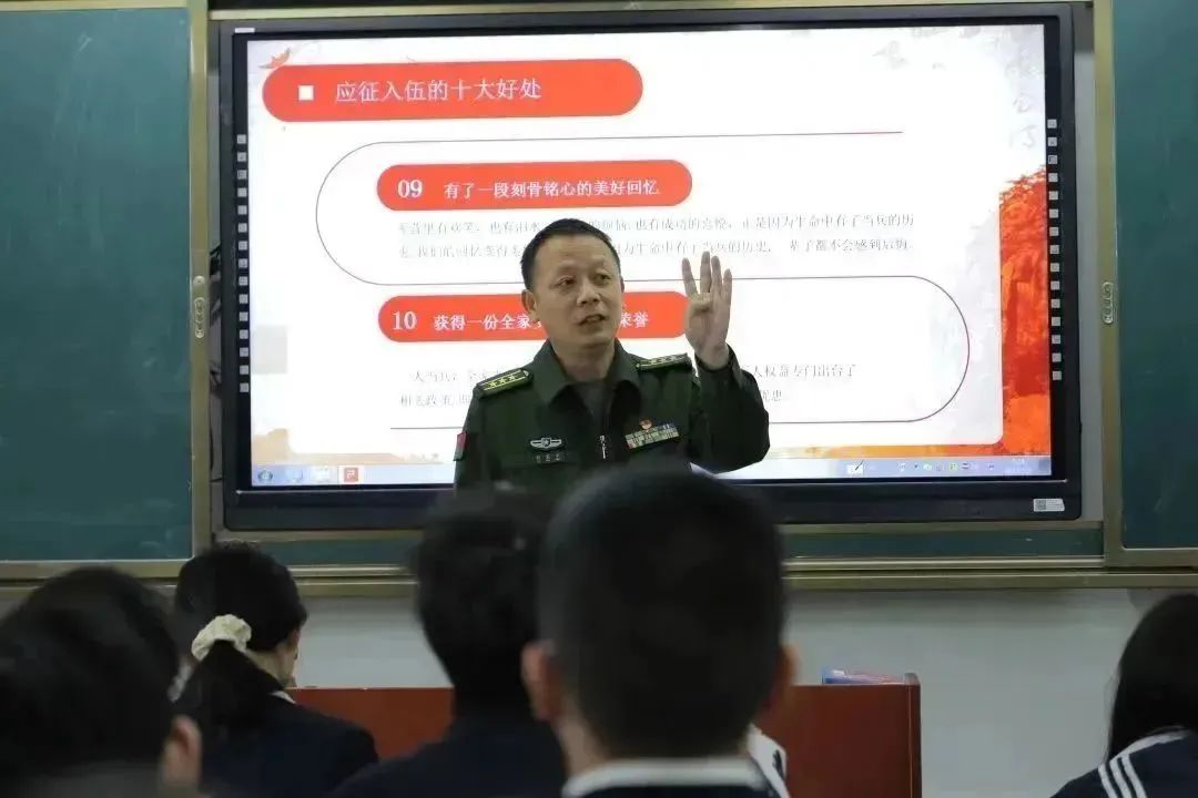 在荊門外語學(xué)校、湖北信息工程學(xué)校,征兵宣講員走進各畢業(yè)班,結(jié)合課件、征兵宣傳手冊,向15個班級學(xué)生講解了報名參軍的十大好處。