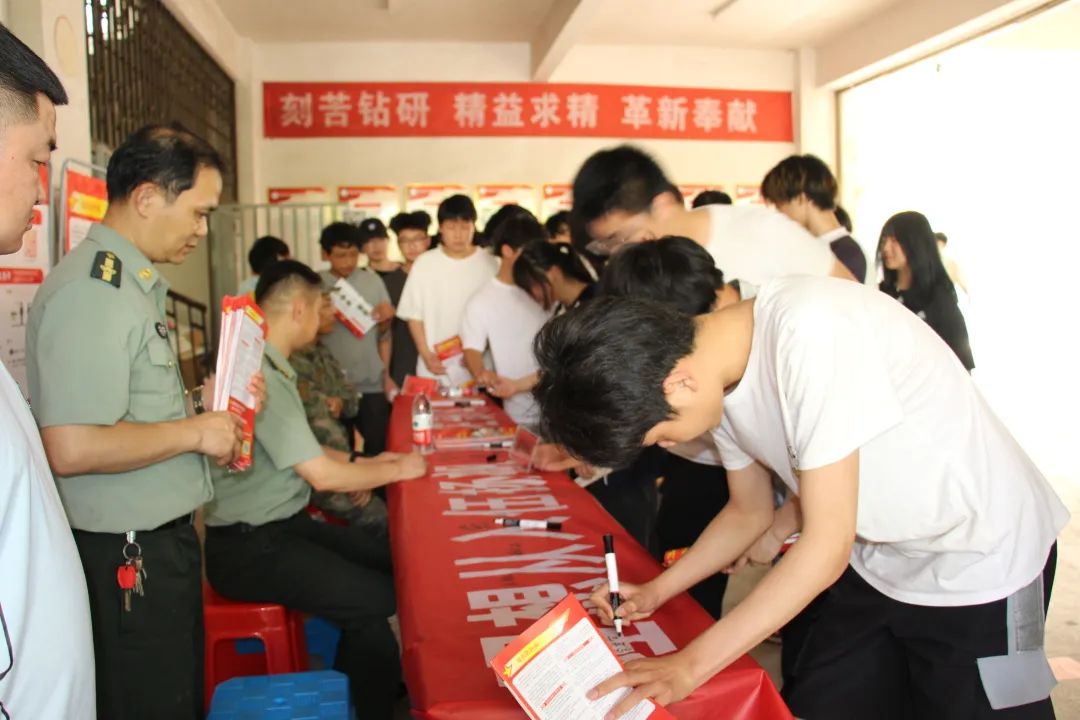 同學(xué)們紛紛在“理想從入伍揚帆 人生在部隊閃光”的條幅前駐足并簽下自己的名字。