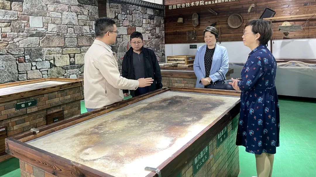 期間,評估小組一行赴恩施職業(yè)技術學院-恩施玉露制作技藝傳承培訓基地現(xiàn)場調研。隨后,在恩施市非遺中心與恩施市國家級、省級非遺代表性傳承人召開座談會,對恩施市非遺代表性傳承人及傳承基地開展傳承培訓和宣傳推廣工作給予肯定,評估小組一行鼓勵代表性傳承人進一步開展宣傳展示活動,并為寶貴的非物質文化遺產項目多培養(yǎng)后繼人才。
