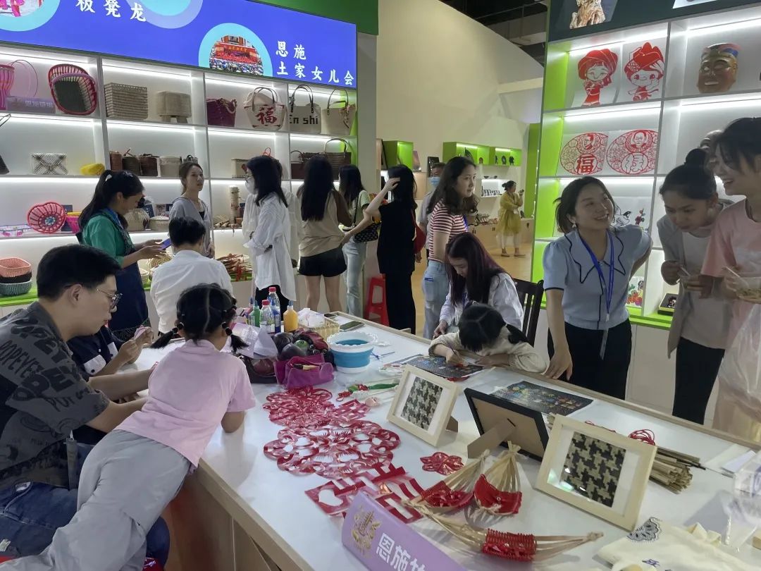 “非遺集市”展區(qū),恩施市主題館展館內(nèi),項(xiàng)目多彩、展品豐富。恩施木雕、恩施草編、恩施剪紙、恩施竹編、恩施儺面具制作技藝、油茶湯制作技藝、漆器髹飾技藝、恩施玉露制作技藝、王氏丸劑傳統(tǒng)制作技藝、竹馬、恩施地鴿子、恩施莊氏正骨法等十二類非遺項(xiàng)目以及非遺文創(chuàng)打花鋪參加了本次活動(dòng)的展覽展示展銷,同時(shí)還進(jìn)行了恩施市特色文藝節(jié)目展演,充分展示了近年來恩施市非遺保護(hù)及傳承工作的顯著成果。