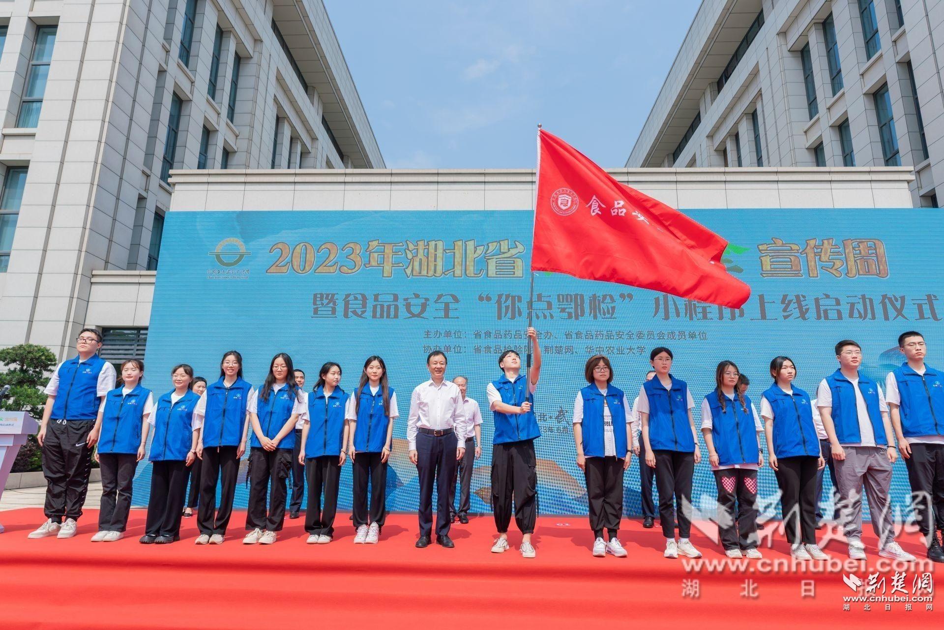 活動現(xiàn)場,省政府副秘書長趙俊發(fā)布2023年湖北省食品安全宣傳周暨食品安全“你點鄂檢”小程序正式上線啟動命令,向華中農(nóng)業(yè)大學“食品安全湖北行”社會實踐活動團隊授旗。