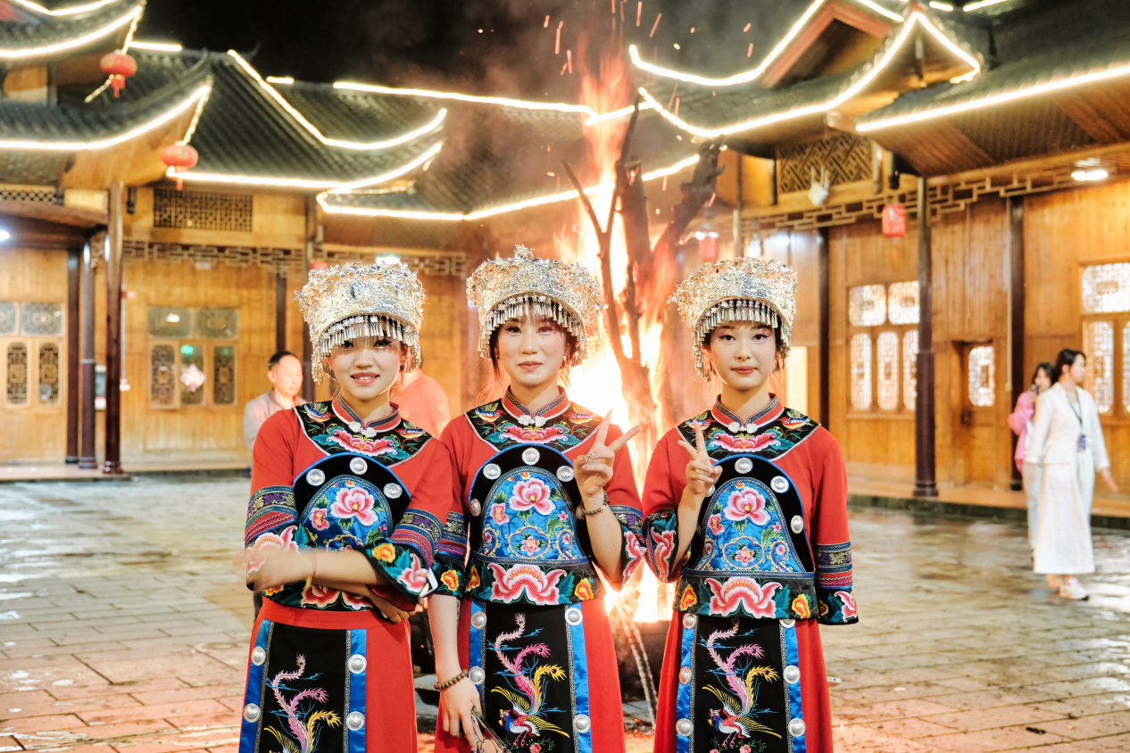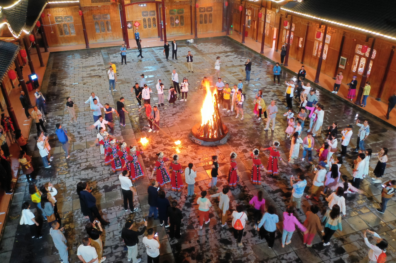 長桌宴上賞土家族特色表演 篝火旁齊跳擺手舞