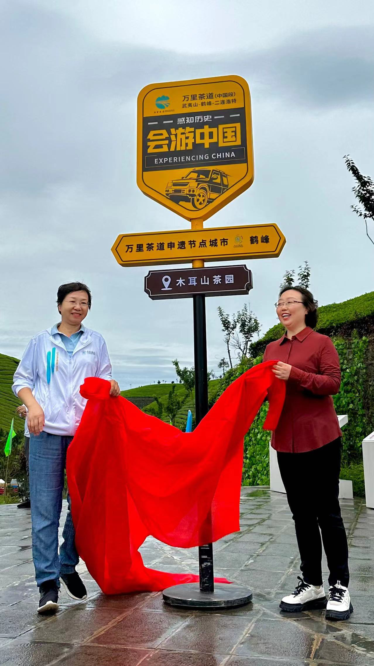 6月23日,連綿如海的木耳山茶園迎來“感知歷史·會游中國”萬里茶道打卡標牌揭牌儀式,湖北省文物事業(yè)發(fā)展中心紀委書記晏妮、鶴峰縣政協(xié)主席覃長玉為“會游中國-萬里茶道申遺節(jié)點城市鶴峰-木耳山茶園”揭牌。大家在萬里茶道茶源地石碑和打卡點立牌前合影留念,記錄這一歷史性的時刻。