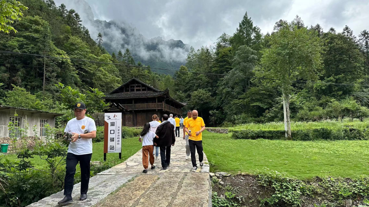 集結(jié)賽期間,車手參觀萬里茶道鶴峰段茶文化陳列館,了解到宜紅之源鶴峰段在萬里茶道的重要作用。洞口驛站旁的鶴峰野生紅茶品茶區(qū)人聲鼎沸,眾人品茶,重溫古道茶香。徒步在青苔覆蓋的余家橋至三連坡道路遺址起點的石路上,讓人聯(lián)想起古道上的馬蹄聲聲,深刻感受南村歷史背后的魅力。