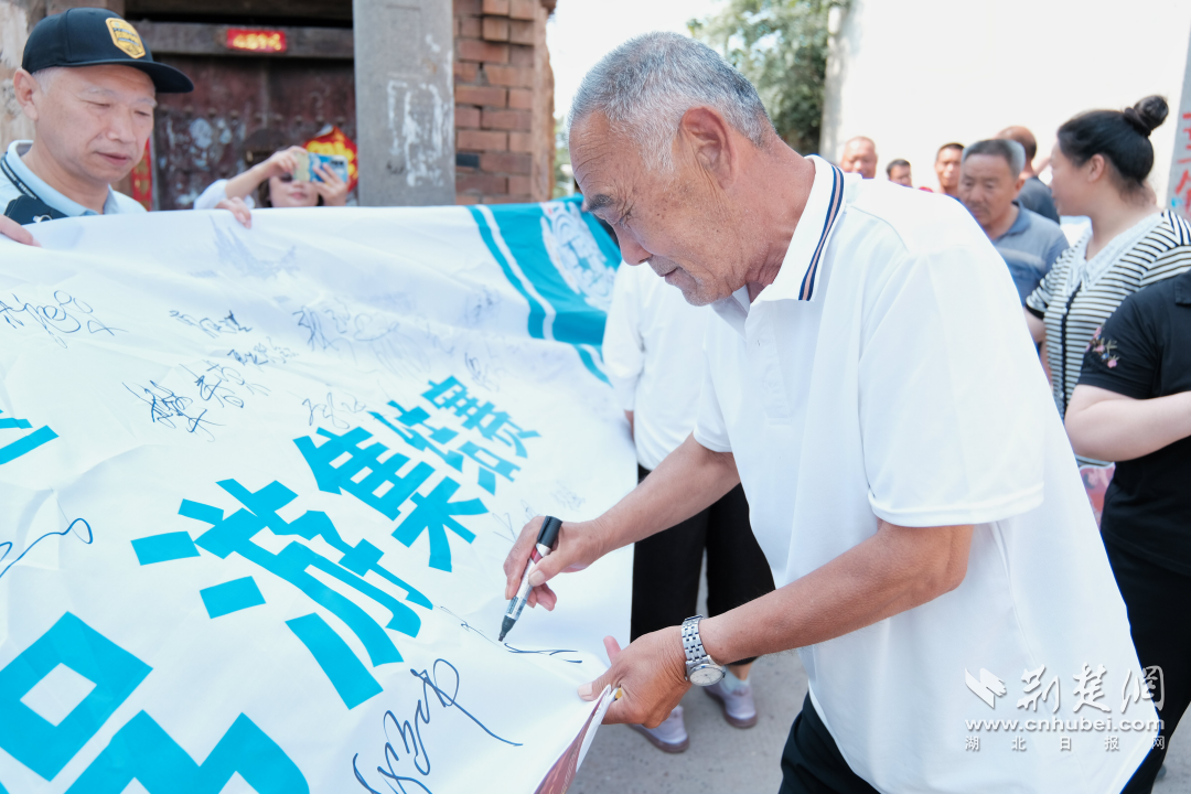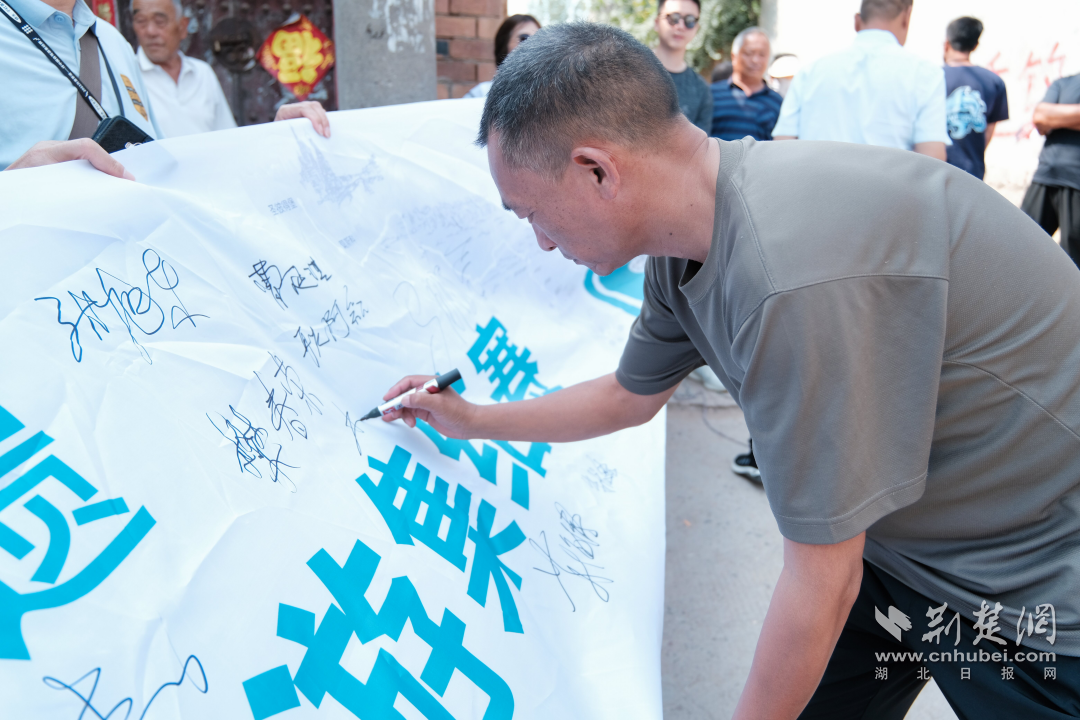 半扎古鎮(zhèn)村民在全民助力申遺橫幅上簽字