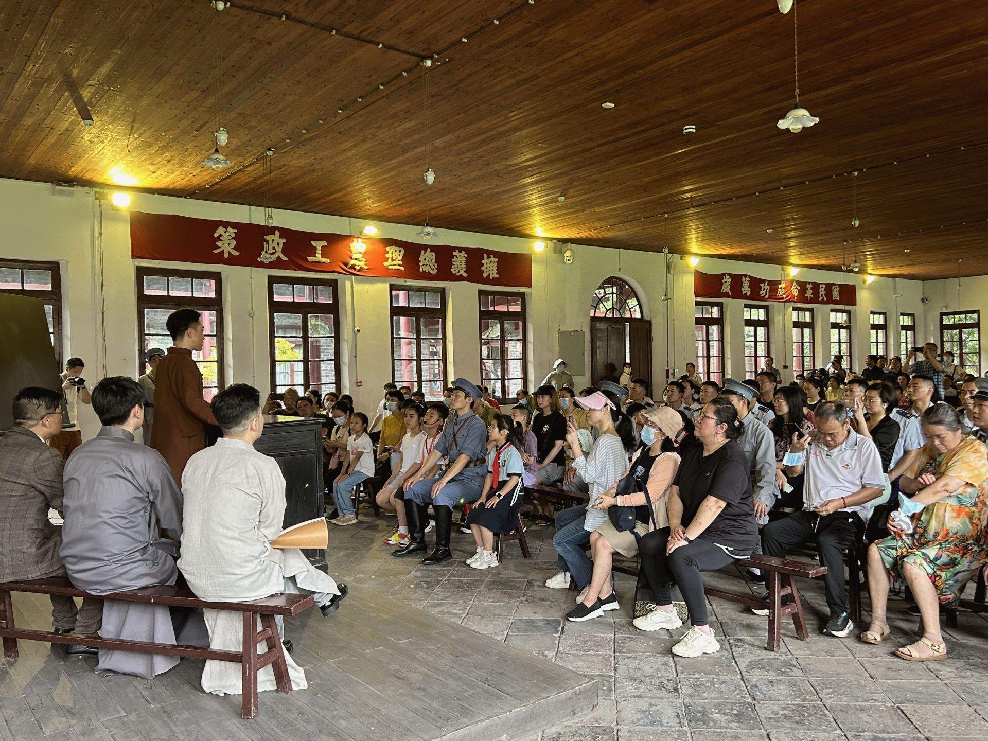 一幕幕歷史場(chǎng)景在革命舊址中鋪陳開(kāi)來(lái),觀眾們化身為“農(nóng)講所學(xué)員”“中共五大代表”等, 全程參與其中,穿越時(shí)空和革命先輩進(jìn)行歷史的對(duì)話。