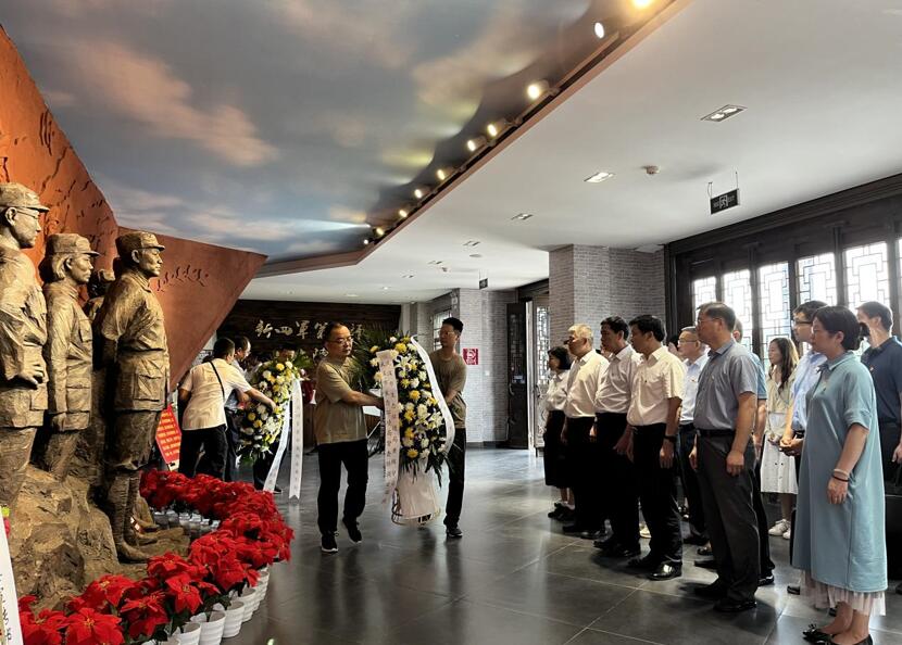 在黃陂區(qū)姚家山村紅色教育基地,全體黨員干部面向國(guó)旗,在雄壯的國(guó)歌聲中,全體同唱《義勇軍進(jìn)行曲》,肅立向著國(guó)旗行注目禮,注視著國(guó)旗冉冉升起,表達(dá)著對(duì)偉大的黨、偉大的祖國(guó)最崇高的敬意。升旗儀式結(jié)束后,來(lái)自省生態(tài)環(huán)境廳和市生態(tài)環(huán)境局的4名黨員干部抬起花籃緩步走上陳列館紀(jì)念碑基座,將花籃輕輕放下,蔣茂芳專員和張朝輝局長(zhǎng)為花籃整理緞帶,并帶領(lǐng)全體黨員三鞠躬,寄托深切哀思。