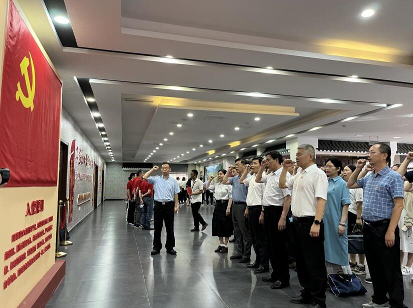 參觀學(xué)習(xí)后,在陳列館鮮紅的黨旗下,全體黨員高舉右手,開展了重溫入黨誓詞活動(dòng)。參加活動(dòng)的全體黨員以一顆赤誠(chéng)之心,面對(duì)黨旗莊嚴(yán)宣誓,鏗鏘有力的聲音縈繞在陳列館,久久回蕩。大家通過(guò)這種方式熱烈慶祝中國(guó)共產(chǎn)黨102周年華誕,通過(guò)儀式感召,進(jìn)一步激發(fā)了廣大黨員的使命感和責(zé)任感,激勵(lì)參加活動(dòng)的全體黨員干部保持永不懈怠、奮發(fā)進(jìn)取的精神狀態(tài),不忘初心,牢記使命,為推動(dòng)我省高質(zhì)量發(fā)展貢獻(xiàn)生態(tài)環(huán)保力量。