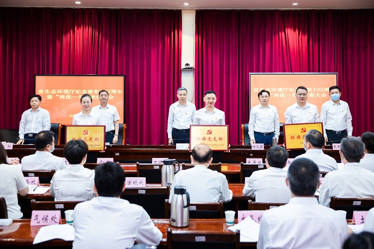 7月1日,省生態(tài)環(huán)境廳舉行紀念建黨102周年暨“兩優(yōu)一先”表彰大會。廳黨組書記、廳長何開文同志傳達學習了習近平總書記對黨的建設和組織工作作出的重要指示精神,并以《深入學習貫徹習近平新時代中國特色社會主義思想 堅決扛起長江大保護的政治責任》為題為全廳黨員干部講授黨課。省委第三巡回指導組領導到會指導,廳黨組成員、副廳長萬麗華主持會議。