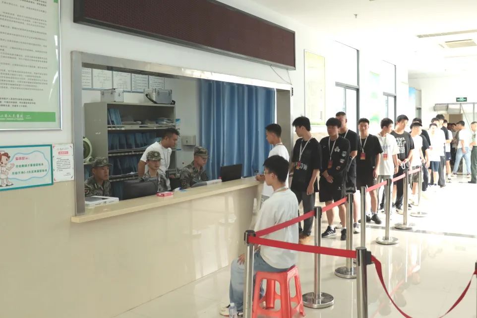 近日,隨縣征兵辦組織2023年下半年第一批應征青年進站體檢,參檢的適齡青年懷揣青春夢和強軍夢走進征兵體檢站完成全項目檢查,接受祖國選拔。