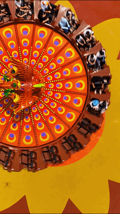 《鳳舞九天》飛天轉(zhuǎn)盤游樂項目,不僅外觀精美,而且體驗感極強!座艙在360°公轉(zhuǎn)的同時又有規(guī)律的偏心旋轉(zhuǎn),讓你擁有如鳳凰飛翔般的非凡體驗。