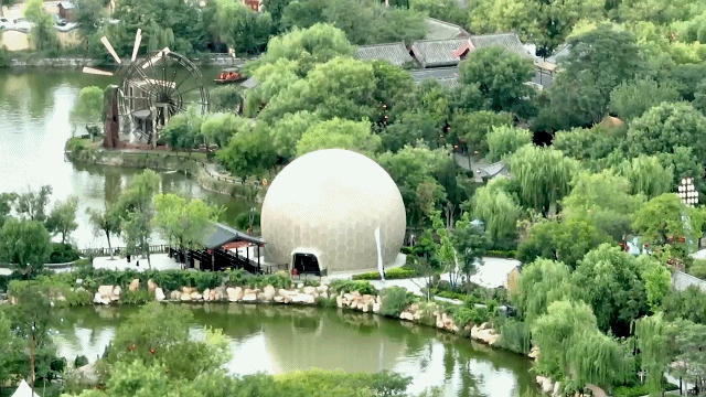 《飛越清明上河圖》球幕影院項(xiàng)目以北宋張擇端的《清明上河圖》為主題,利用數(shù)字科技,讓這幅傳世佳作在12米超大直徑的IMAX巨型球形熒幕上煥發(fā)出新的生機(jī)。整個(gè)球幕畫(huà)面為360°全景呈現(xiàn),利用科技呈現(xiàn)裸眼3D版《清明上河圖》,打造沉浸式觀影體驗(yàn)。座椅通過(guò)模擬上升、俯沖、滑翔等動(dòng)作,帶領(lǐng)游客穿越千年歷史畫(huà)卷,一覽宋代盛景,讓游客猶如身臨其境般暢游在3D版《清明上河圖》畫(huà)卷之中。