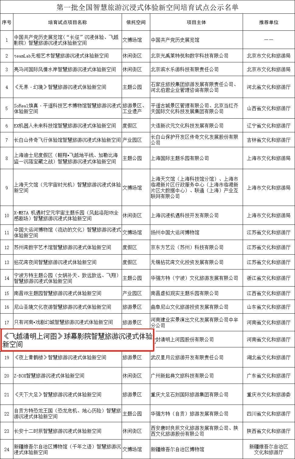 第一批全國(guó)智慧旅游沉浸式體驗(yàn)新空間培育試點(diǎn)名單