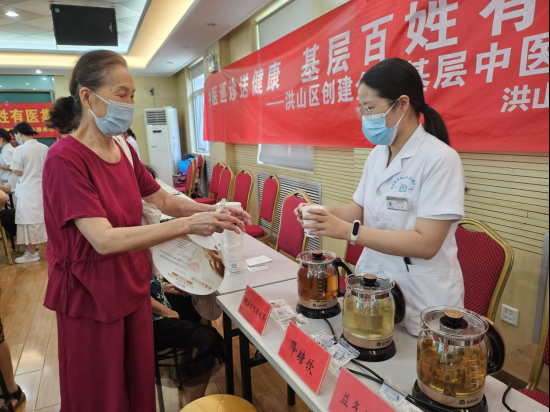 活動(dòng)現(xiàn)場,梨園街東湖社區(qū)衛(wèi)生服務(wù)站家庭醫(yī)生團(tuán)隊(duì)也在為居民進(jìn)行血壓的檢測,中醫(yī)科帶來了多種養(yǎng)生茶飲,在辯證后為居民提供適合的茶飲進(jìn)行體驗(yàn),將“舌尖上的養(yǎng)生”落到實(shí)處。此次進(jìn)行茶飲體驗(yàn)的居民由87人次。