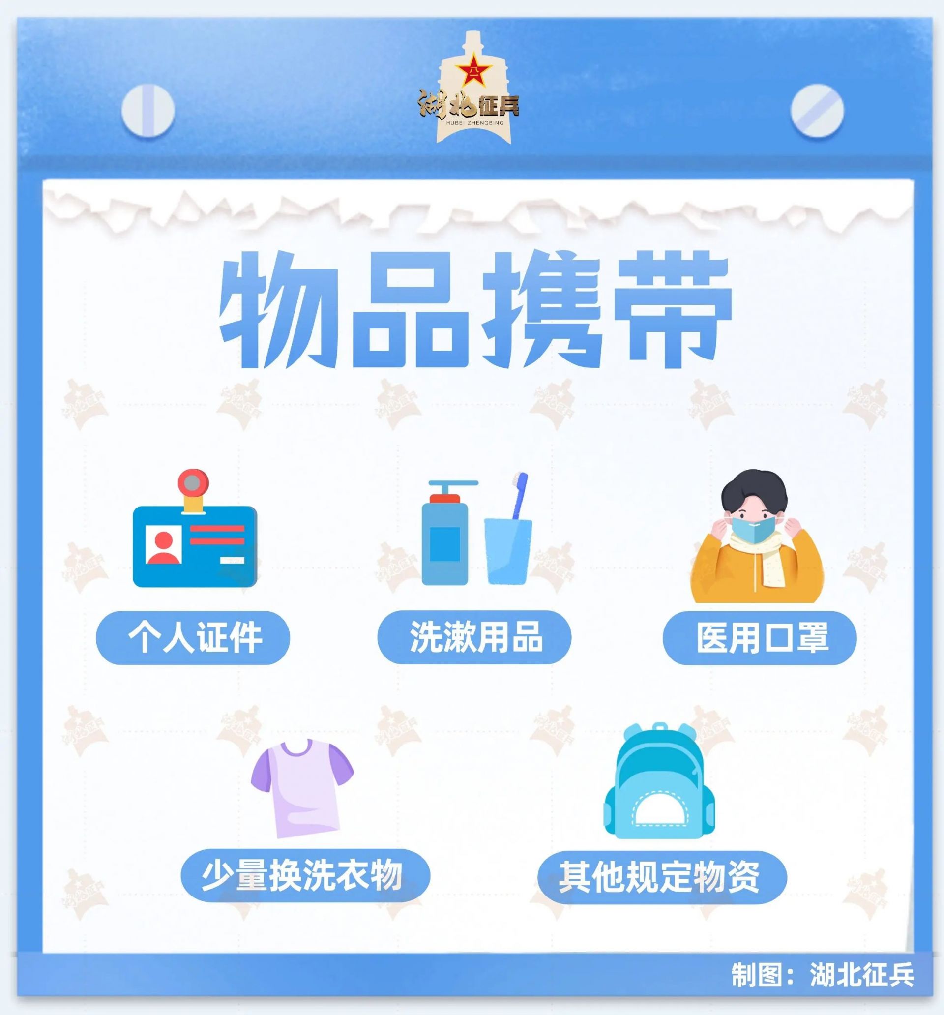應征青年按照規(guī)定攜帶物品即可,一般包含:個人證件(如身份證)和生活用品(醫(yī)用口罩、洗漱用品、少量換洗衣物等)。