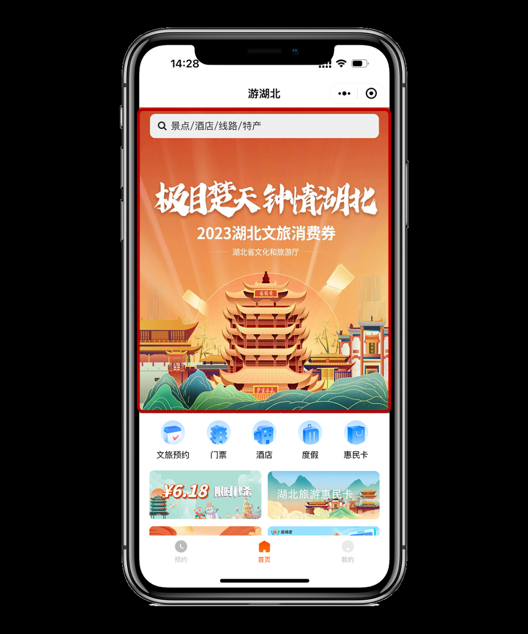 第一步:打開“游湖北”APP/小程序——點擊進入“極目楚天 鐘情湖北”文旅消費券活動