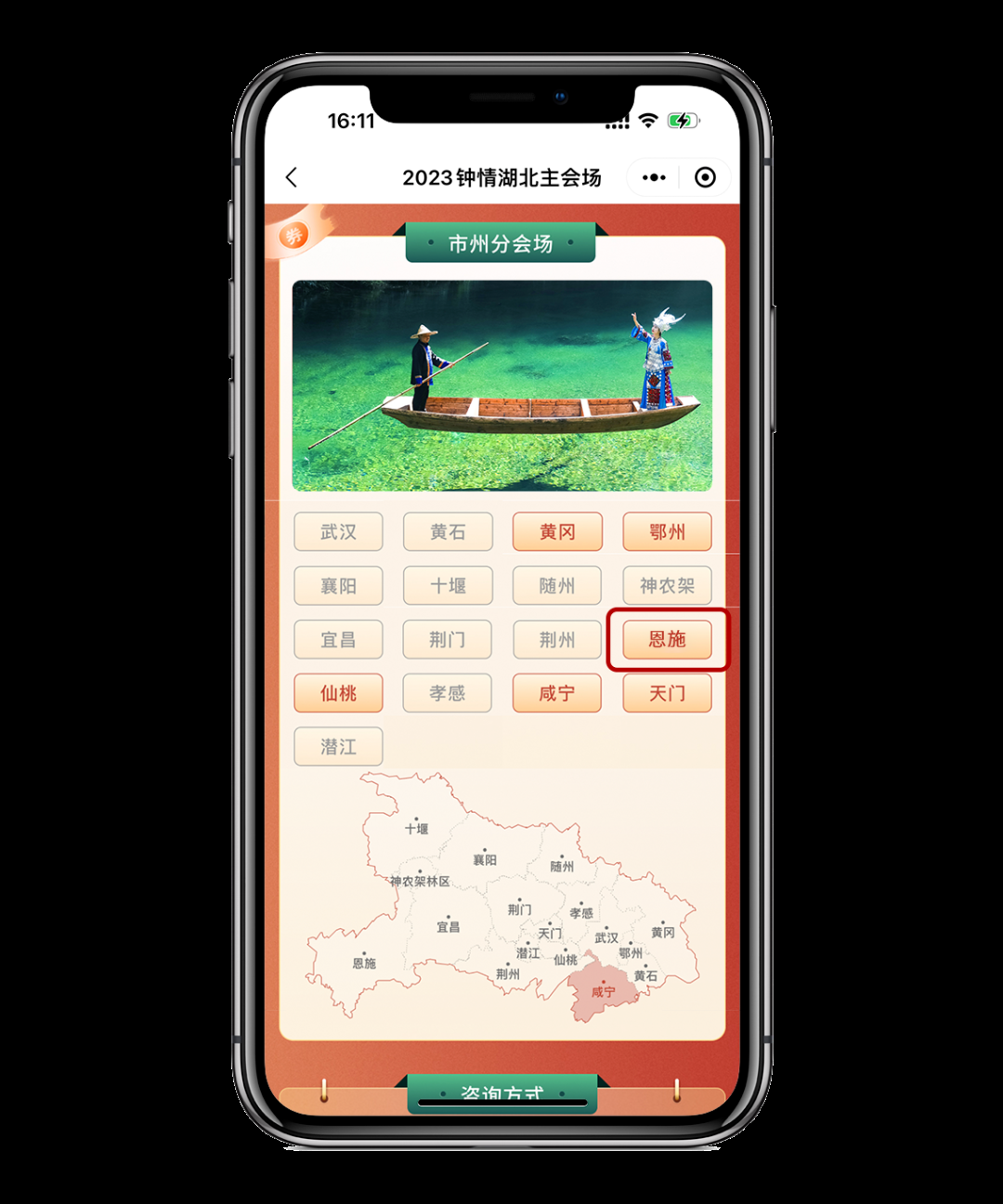 第二步:在活動頁面選擇【出游城市】,點擊“恩施”進入領(lǐng)券專區(qū)