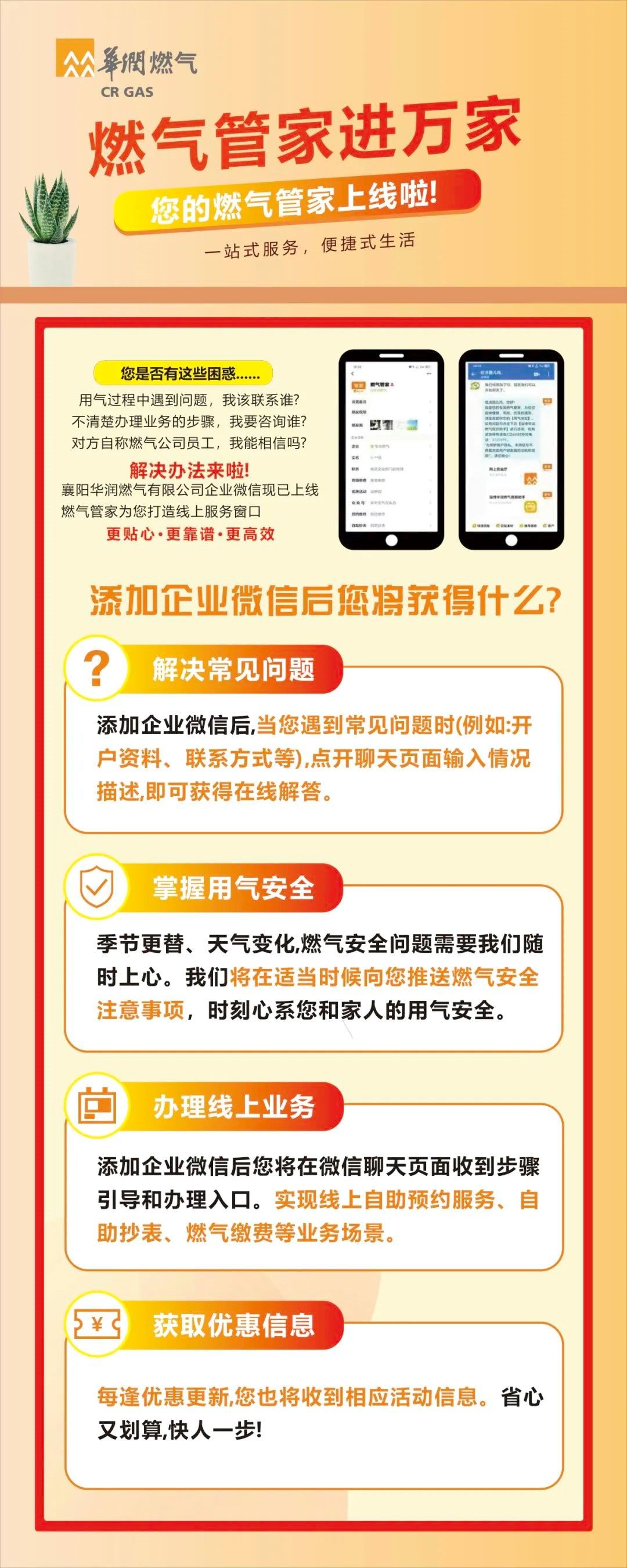 添加企業(yè)微信后,可以獲得解決常見問題、掌握用氣安全、辦理用戶業(yè)務(wù)、獲取優(yōu)惠信息等具體問題的解決方法。
