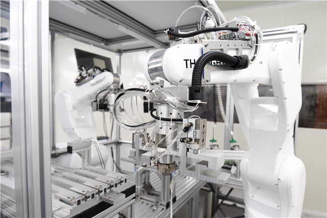 金山科技智能工廠數(shù)字醫(yī)療設(shè)備生產(chǎn)線上的工業(yè)機(jī)器人。金山科技供圖