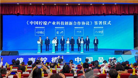 《中國檸檬產(chǎn)業(yè)科技創(chuàng)新合作協(xié)議》簽署儀式現(xiàn)場(chǎng)。華龍網(wǎng) 鄧晨曦 攝