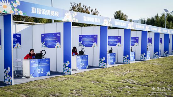 “今天的優(yōu)惠數(shù)量有限,喜歡的寶寶趕緊下單”“倒計(jì)時(shí)3、2、1,上鏈接……”環(huán)形補(bǔ)光燈前,15名“菊花露”帶貨主播拿出“看家本領(lǐng)”對(duì)著直播設(shè)備賣力地“吆喝”著,這里不是網(wǎng)紅直播間,而是競賽的現(xiàn)場(chǎng)。
