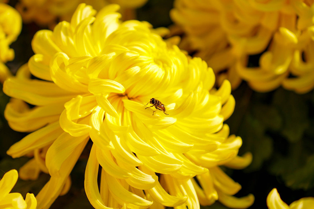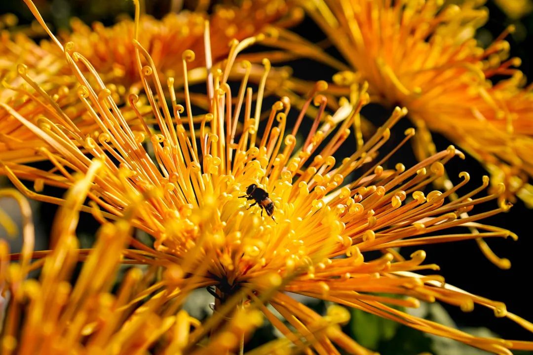 菊香引得蜂自來,滿園菊花齊爭艷!