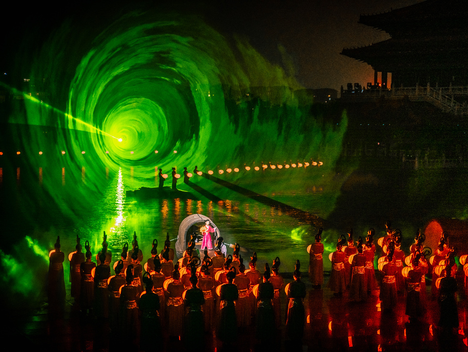 在景龍湖畔凝結(jié)為《大宋·東京夢華》實景演出。