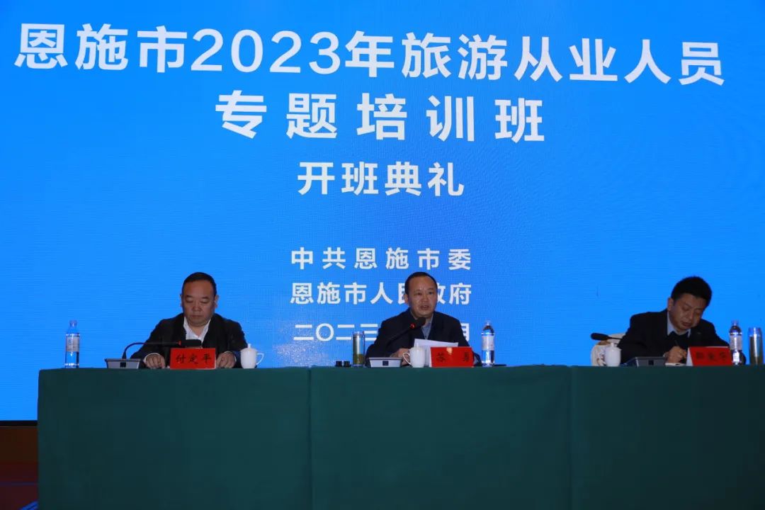 11月27日,2023年恩施市旅游從業(yè)人員專題培訓班正式開班,來自旅行社、星級飯店及民宿代表和導游共400余人齊聚一堂,加強政治理論和旅游業(yè)務學習,全方位提升能力素質(zhì)。市委書記蘇勇,恩施州文化和旅游局黨組書記、局長邵愛華出席開班儀式并講話,副市長付定平主持開班儀式。