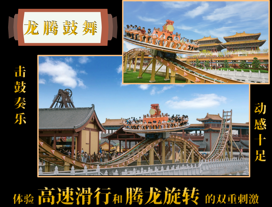 “龍騰鼓舞”游樂設(shè)施伴隨音樂節(jié)奏,動感十足,讓游客體驗(yàn)滑行和旋轉(zhuǎn)雙重刺激。