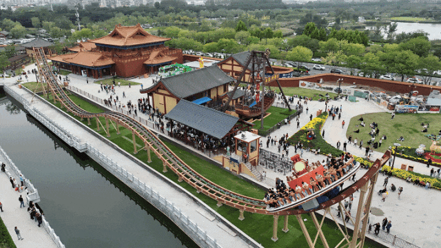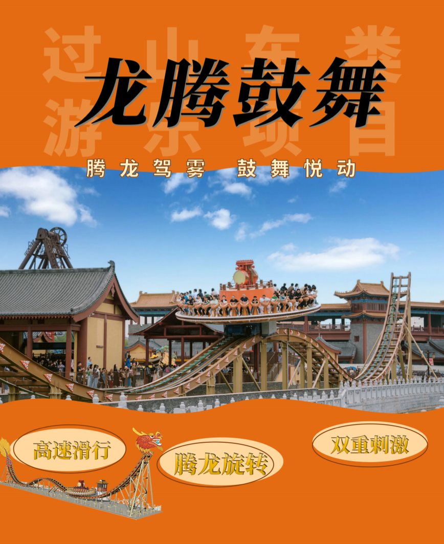 “龍騰鼓舞”游樂(lè)設(shè)施,增加了宋代擊鼓元素,伴隨音樂(lè)節(jié)奏,動(dòng)感十足,讓游客擁有騰云駕霧的沉浸體驗(yàn),體驗(yàn)高速滑行和舞動(dòng)旋轉(zhuǎn)的雙重刺激。
