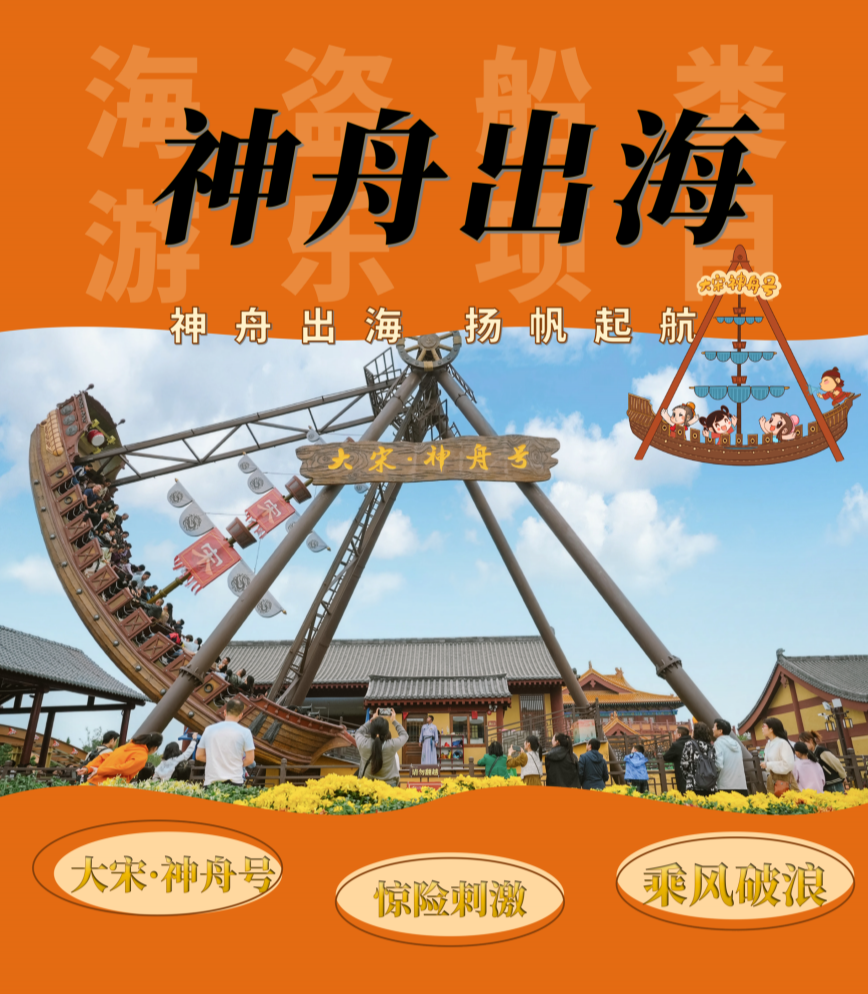 “神舟出?!庇螛?lè)項(xiàng)目復(fù)原了大宋官方使臣出使海外國(guó)家的“神舟”,你可乘坐“大宋·神舟號(hào)”與大宋使臣一起揚(yáng)帆起航、乘風(fēng)破浪!