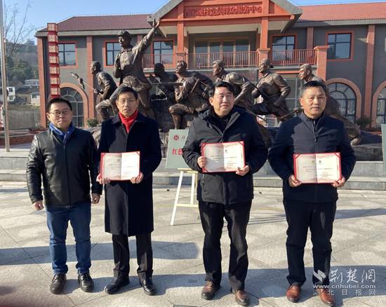 隨后,湖北理工學(xué)院科研處處長(zhǎng)程濤現(xiàn)場(chǎng)為大箕鋪鎮(zhèn)紅色文化研究人員萬(wàn)敬平、曹樹(shù)友、郭西安等,頒發(fā)了鄂東南紅色文化研究中心特聘研究員聘書(shū)。