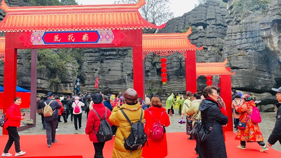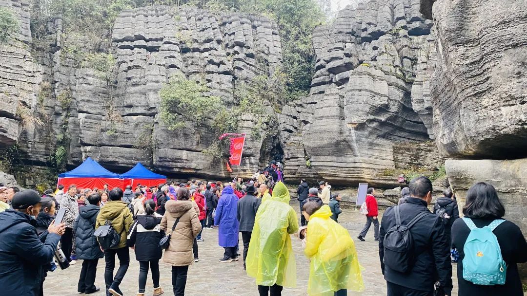 恩施州梭布埡石林景區(qū)的第五屆土家廟會于1月1日盛大開幕,吸引了近2000名游客從五湖四海前來參與。廟會現(xiàn)場人氣爆棚,歡樂火熱的氛圍讓游客們沉浸在濃郁的年味中。