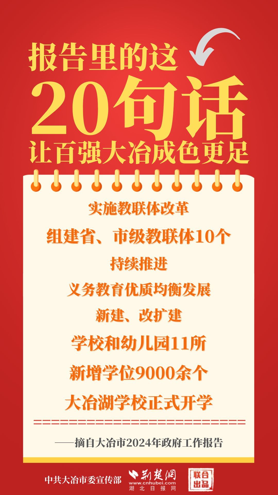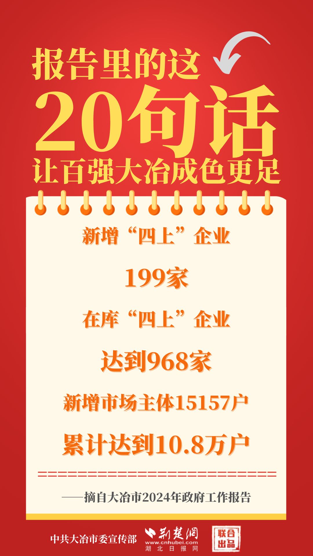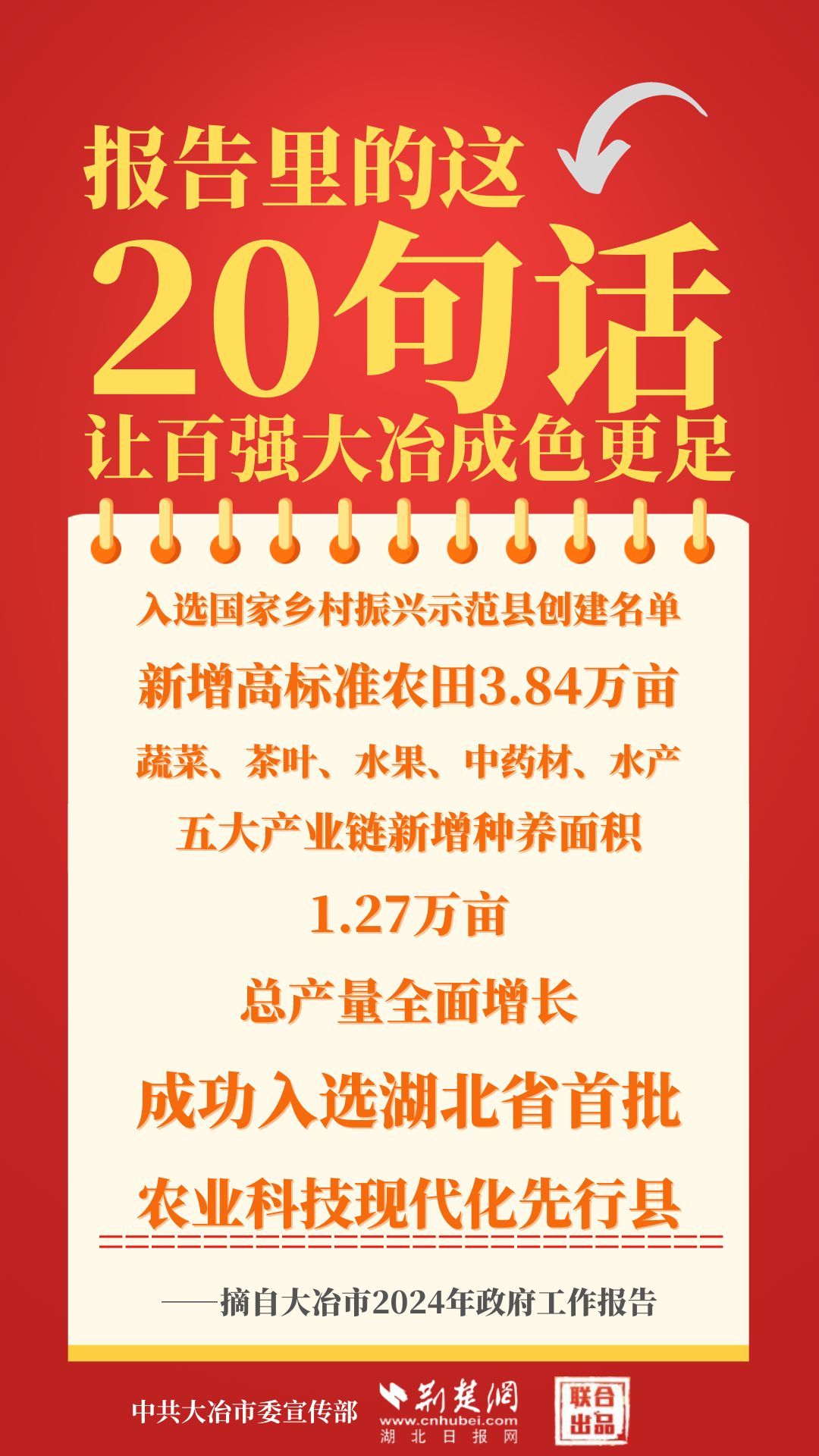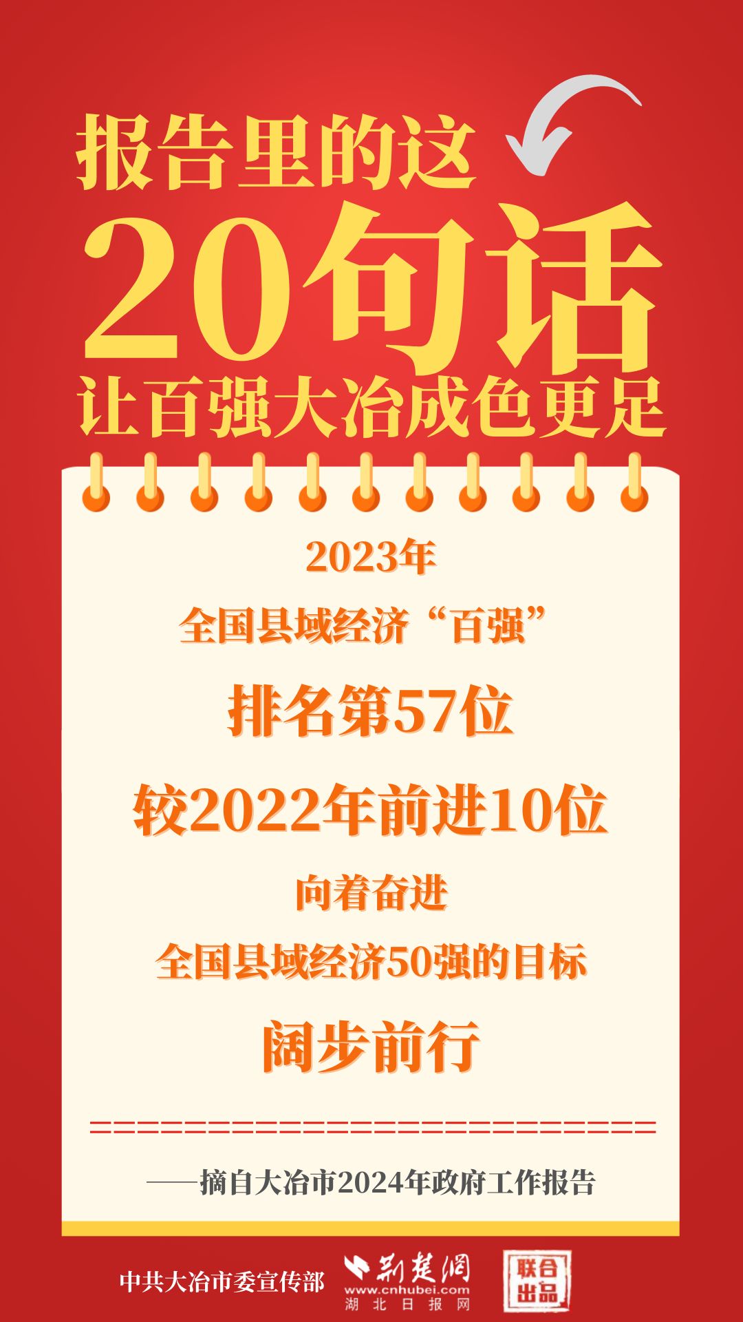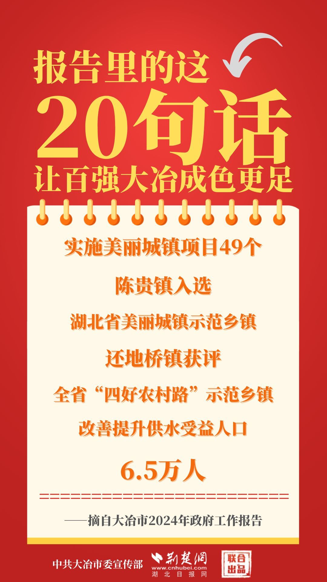 1月12日,大冶市第七屆人民代表大會第四次會議開幕,大冶市委副書記、市長孫輒作政府工作報告。報告里的這20句話,讓百強大冶成色更足。