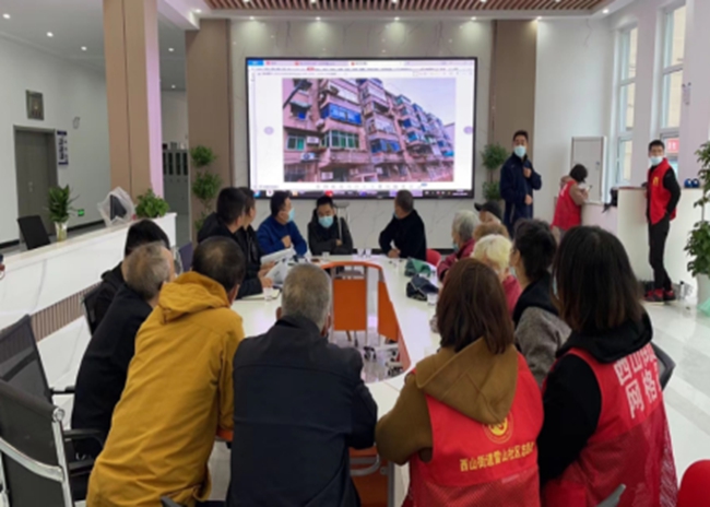 在34棟天面整治項目中,雷山社區(qū)通過“線上+線下”創(chuàng)新共謀方式對居民需求摸底,引導居民參與建言獻策,搭建社區(qū)議事廳-網(wǎng)格驛站-議事點等共謀陣地5處,從居民反映最強烈為主進行開展入戶摸排了解情況。