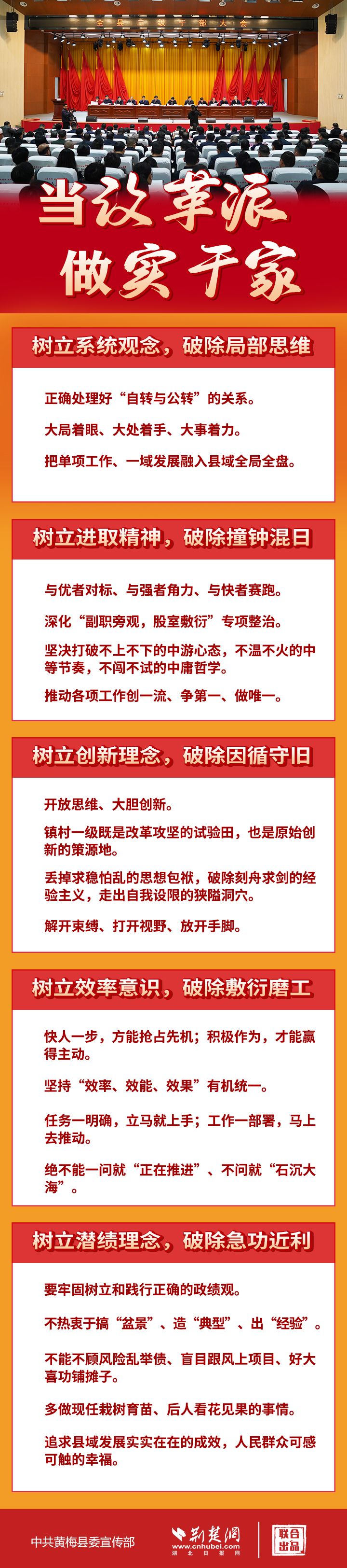 2月20日,黃梅縣召開三級干部大會??h委書記劉欲曉提出,黃梅要前進,根本在干部。要引領(lǐng)全縣干部解放思想、甩開膀子、邁開步子、干出樣子,在堅持先立后破中保持站位前列姿態(tài)。