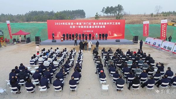 龍騰虎躍迎盛世,將軍故里喜事多。當(dāng)天,紅安一中新校區(qū)建設(shè)項目、陜西國力信達(dá)康養(yǎng)項目、中農(nóng)聯(lián)·紅安國際農(nóng)商城、滬蓉高速紅安聯(lián)絡(luò)線城區(qū)出口連接線等12個項目現(xiàn)場熱鬧非凡,正在同時舉行紅安縣一季度“開門紅”重大項目集中開工儀式,吹響“開年即開工、起步即沖刺”的沖鋒號角,以賽龍奪錦之勢奮戰(zhàn)一季度“開門紅”。