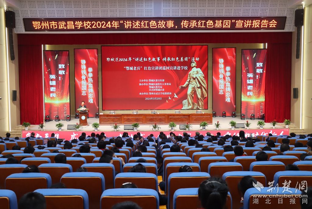 荊楚網(wǎng)(湖北日?qǐng)?bào)網(wǎng))訊(記者 阮瓊 通訊員 黃丹)3月29日,鄂州市武昌學(xué)校新落成的學(xué)術(shù)報(bào)告廳里歌聲嘹亮。當(dāng)天,“鄂城老兵”紅色宣講團(tuán)成員走進(jìn)該校,開(kāi)展“講述紅色故事 傳承紅色基因”主題宣講。
