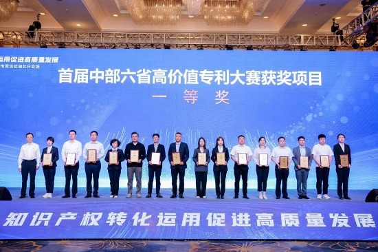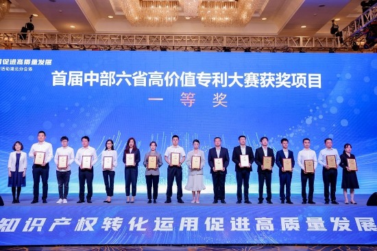 趙俊副秘書長為“首屆中部六省高價值專利大賽”一等獎項目頒獎