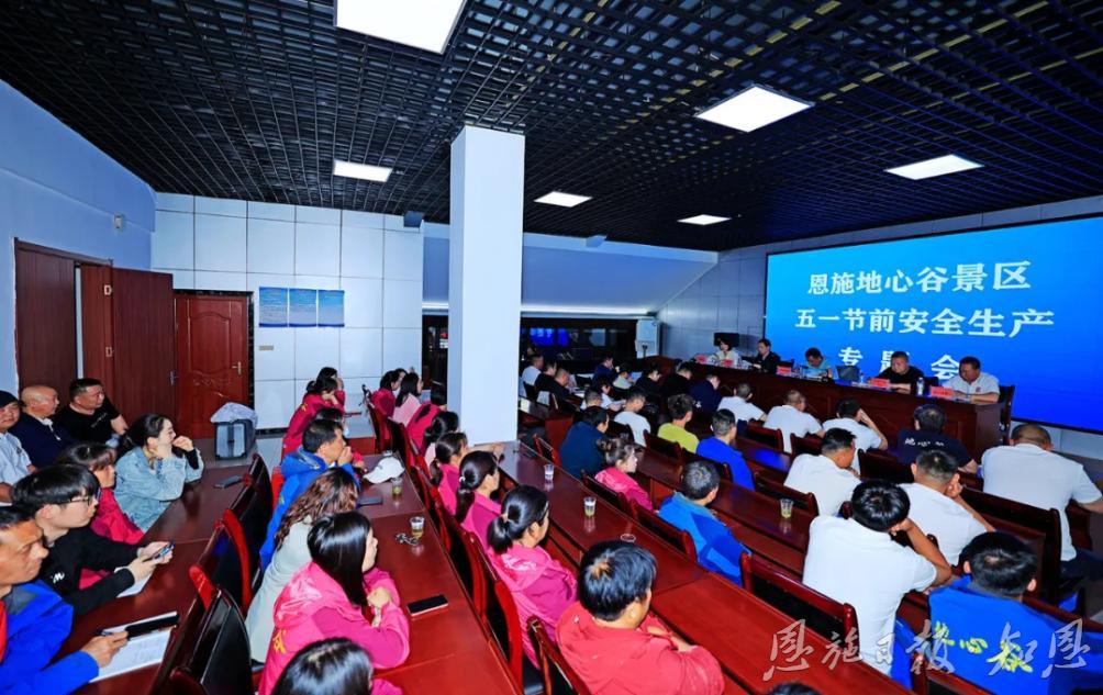 為確?!拔逡弧奔倨诰皡^(qū)各項(xiàng)工作的安全有序開(kāi)展,4月18日,恩施地心谷景區(qū)召開(kāi)了由高坪鎮(zhèn)政府主持,高坪鎮(zhèn)安全生產(chǎn)中心、文體廣電中心、食監(jiān)所、衛(wèi)生院、派出所、國(guó)土所、水利水產(chǎn)中心等單位負(fù)責(zé)人及景區(qū)全體員工參加的“五一節(jié)前安全生產(chǎn)專項(xiàng)會(huì)”。