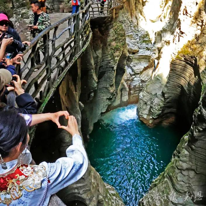 4月以來(lái),隨著恩施地心谷景區(qū)游客接待連續(xù)突破5000人的旅游旺季到來(lái),大量游客接踵而至,盡賞玻璃天橋、懸空棧道、嶂谷河床、巴鹽古道、空中魔毯等景色奇觀,體驗(yàn)鄂西南大山深處《地心之戀》《鹽道古風(fēng)》本土文化民俗傳奇與“地心崖漂”等互動(dòng)樂(lè)趣,驚喜連連。
