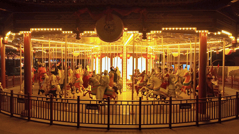 “骕骦千里”游樂項(xiàng)目:是全球最大、國內(nèi)首個(gè)以宋文化為依托的豪華轉(zhuǎn)馬設(shè)備!整體風(fēng)格采用宋代的建筑元素,內(nèi)設(shè)環(huán)繞千里江山圖的壯麗畫面。讓乘客仿佛乘坐在駿馬之上,奔跑在延綿千里的壯闊江山中!
