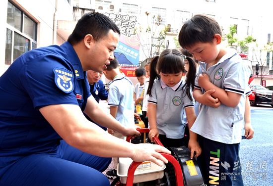 當(dāng)天上午,在黃石市政府機(jī)關(guān)幼兒園教師的帶領(lǐng)下,90余名小朋友走進(jìn)華新路消防救援站,“零距離”體驗消防員工作生活、感受消防文化、學(xué)習(xí)消防知識。