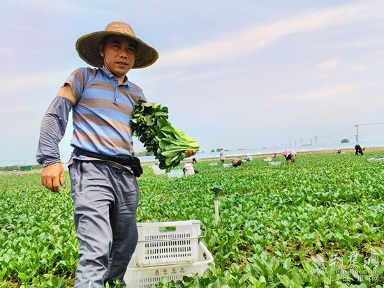 在呂美標精心的打理下,種植基地的廣東菜心長勢喜人。