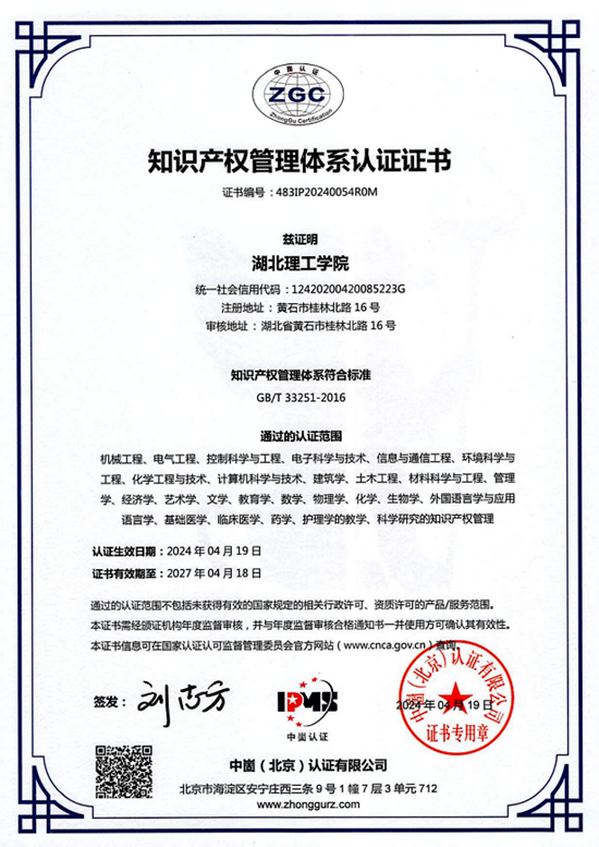 通過知識產(chǎn)權(quán)管理體系認證,標志著湖北理工學院在知識產(chǎn)權(quán)創(chuàng)造、運用、保護、管理邁上了新臺階。接下來,湖北理工學院將以通過知識產(chǎn)權(quán)管理體系認證為契機,緊緊圍繞應用型高校建設(shè)與知識產(chǎn)權(quán)事業(yè)高質(zhì)量發(fā)展主題,進一步激發(fā)創(chuàng)新活力,促進學校知識產(chǎn)權(quán)創(chuàng)造質(zhì)量、運用效益及管理水平和服務(wù)能力的全面提升。