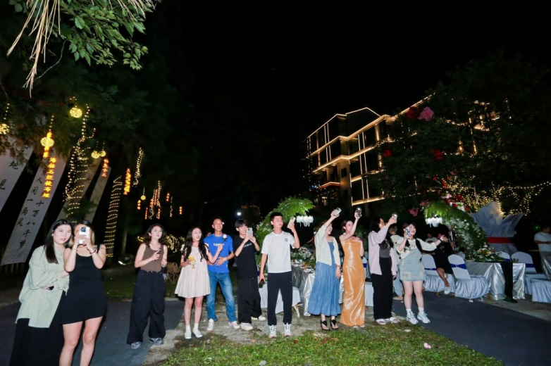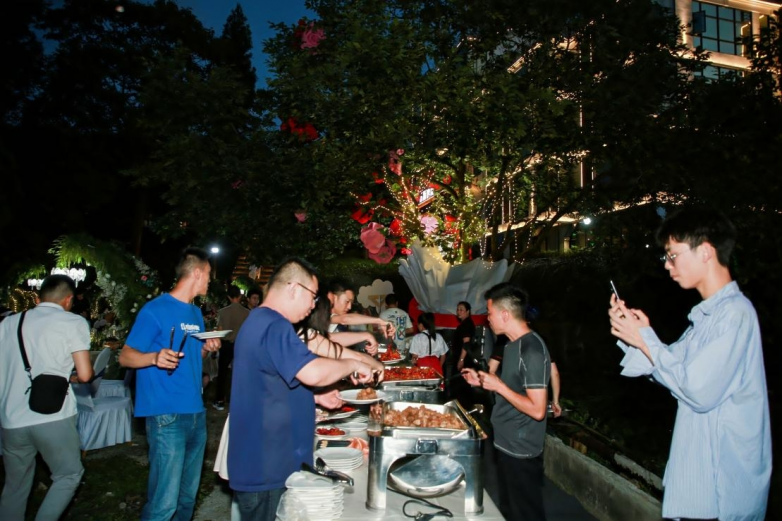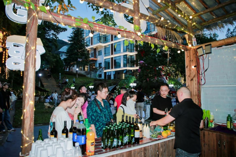 石如歌,林如曲,暮色四合,山野撩人。下午19時(shí),石海別院音樂(lè)酒會(huì)在一首《光輝歲月 》中拉開(kāi)帷幕,為嘉賓帶來(lái)了一場(chǎng)精彩的視聽(tīng)盛宴?,F(xiàn)場(chǎng)嘉賓與樂(lè)隊(duì)歌手積極互動(dòng),盡情享受美食啤酒小龍蝦,感受了別樣的音樂(lè)石林。
